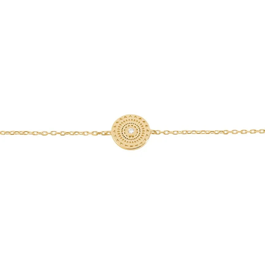 Bracelet Plaqué Or Jaune Motif Cercle Cisele Et Oxyde De Zirconium 18cm