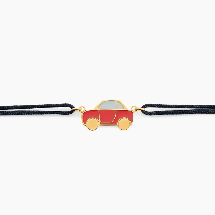 Bracelet Or Jaune 375/1000 Voiture Rouge Sur Cordon Ajustable Nylon Noir