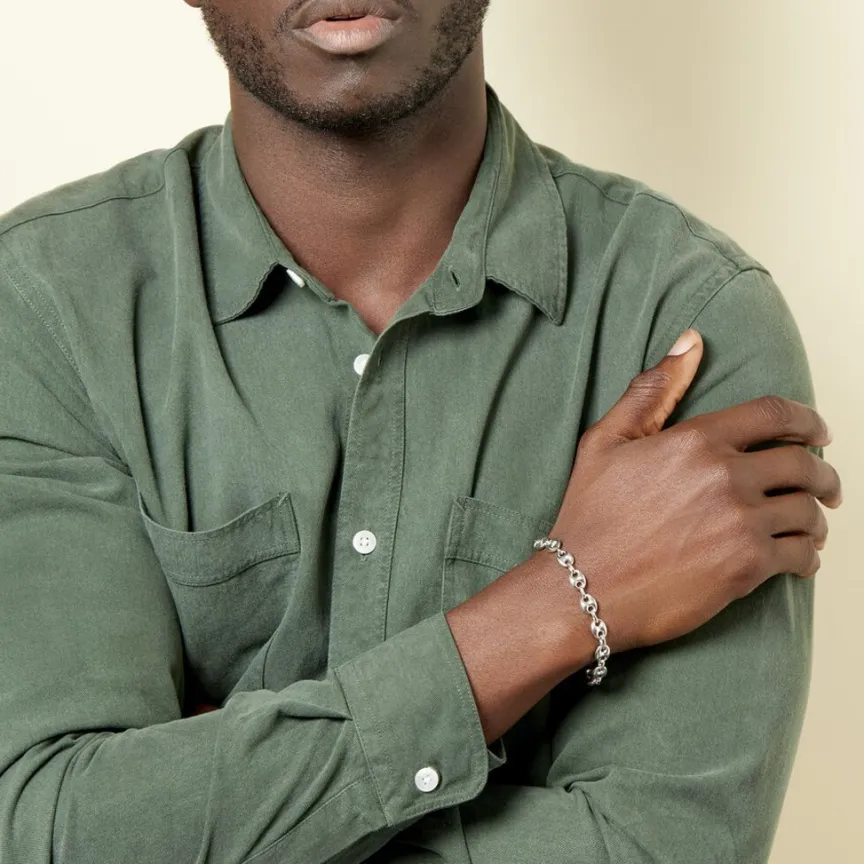 Bracelet Argent Blanc 925/1000 Maille Grain De Cafe 8mm 20cm