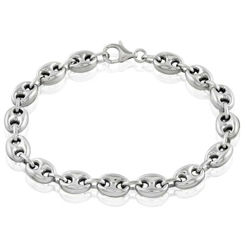 Bracelet Argent Blanc 925/1000 Maille Grain De Cafe Epaisseur 8mm 22cm