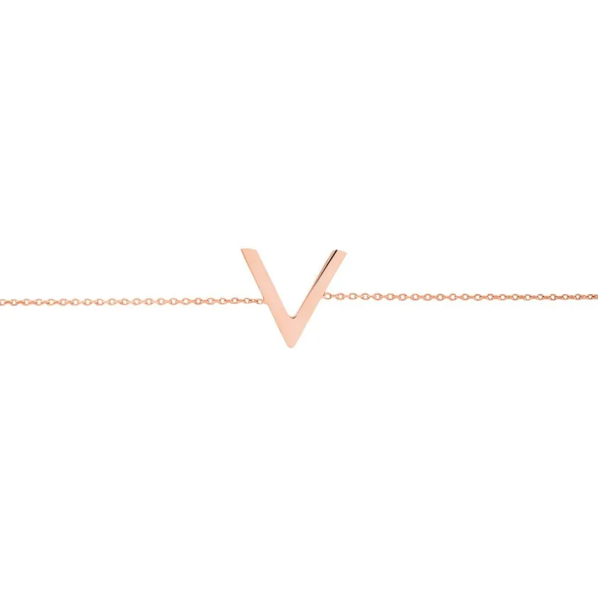 Bracelet Or Rose 375/1000 Forme V Maille Forcat 16+2cm