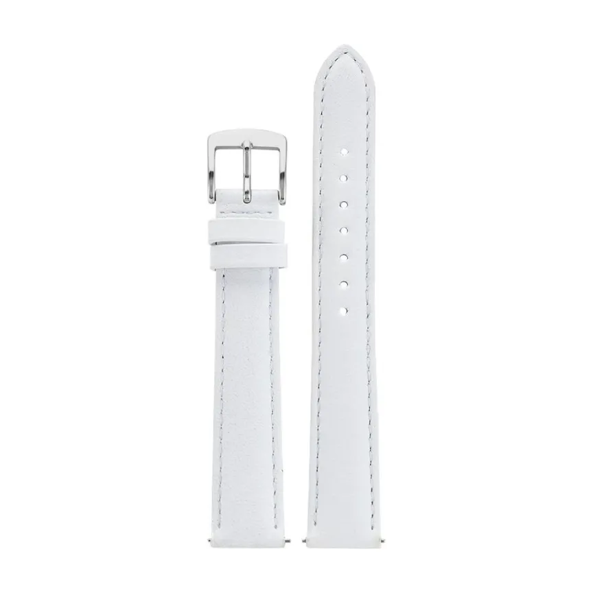 Bracelet De Montre Rochet Cuir D’agneau Mat Blanc Boucle Argentée 16/14mm