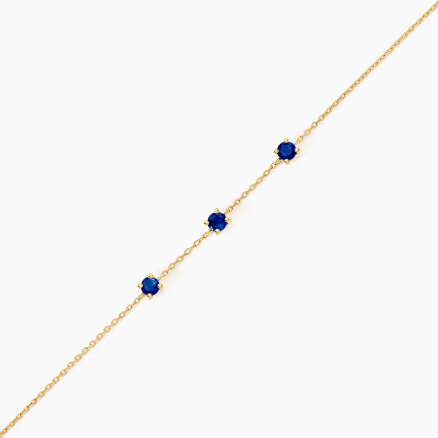 Bracelet Or Jaune 375/1000 Trilogie Saphir Ronds 0,42Cts Sertis 4 Griffes Maille Forcat 16+2Cm