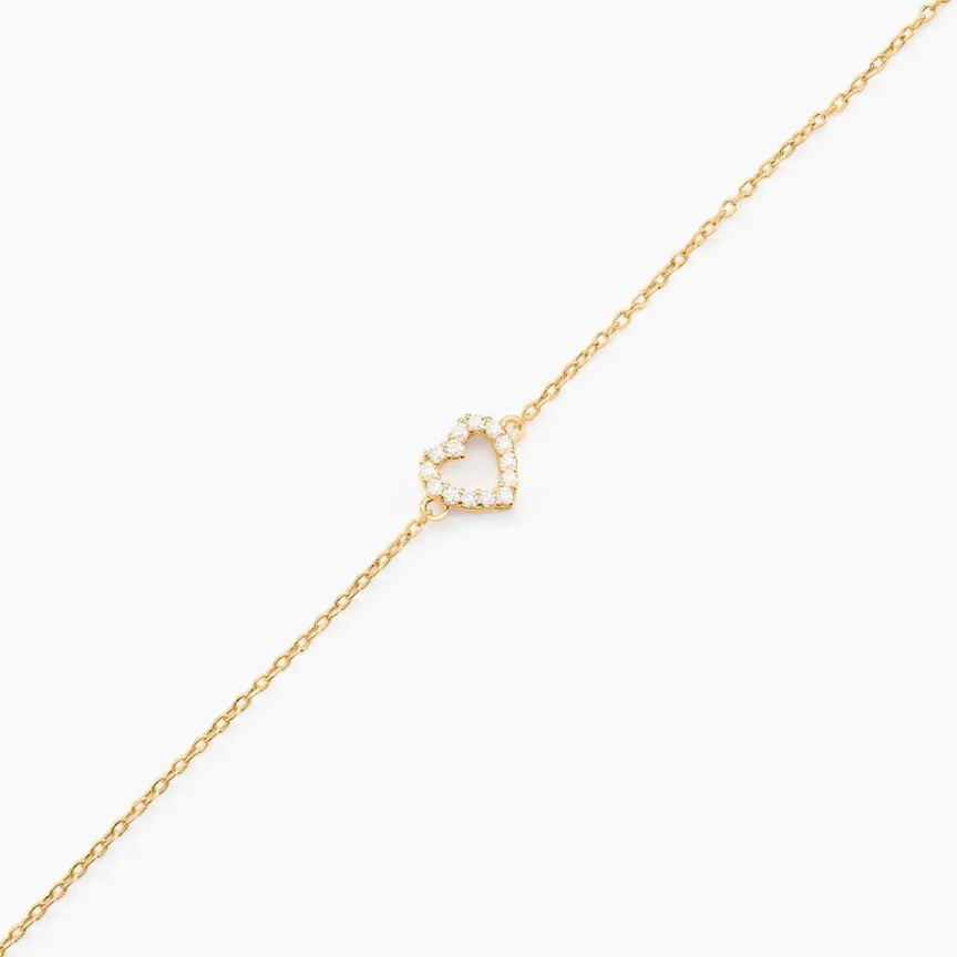 Bracelet Or Jaune 375/1000 C艙ur Oxydes De Zirconium Pm 18cm