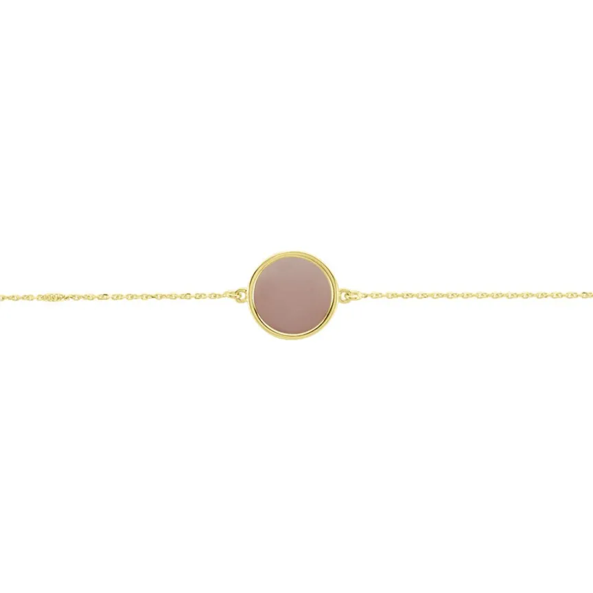 Bracelet Or Jaune 375/1000 Cercle Calcedoine Abricot Maille Jaseron 16+2cm