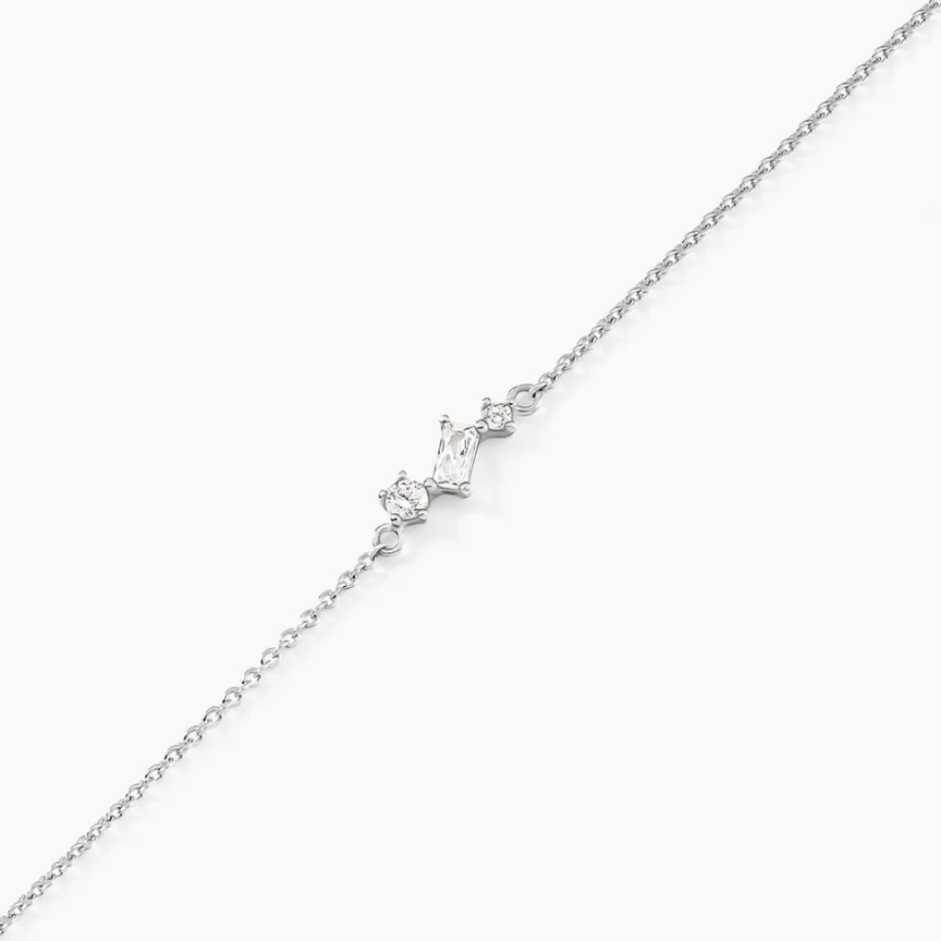 Bracelet Argent Blanc 925/1000 Oxydes De Zirconium Serti Griffes Maille Forçat 16+3cm