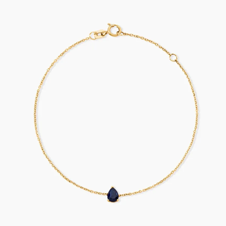 Bracelet Or Jaune 750/1000 Solitaire Saphir Poire 0,34Cts Serti 3 Griffes Maille Forcat 16+2Cm