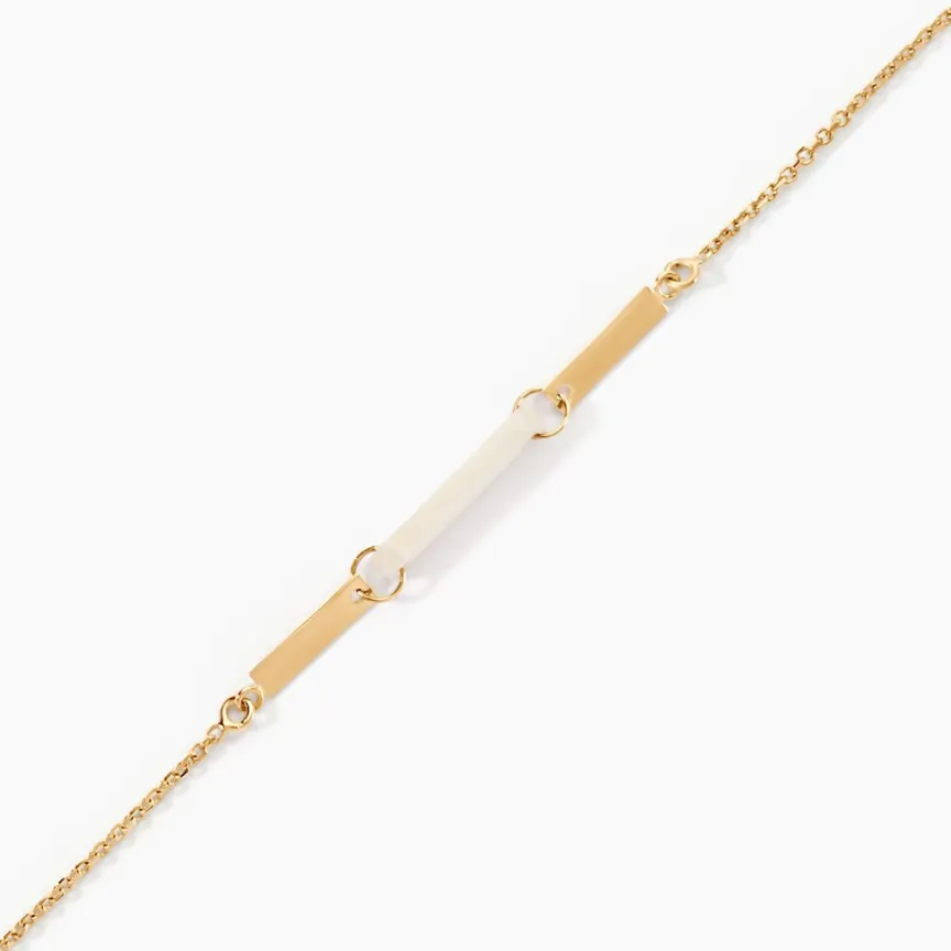 Bracelet Or Jaune 375/1000 Barre Rectangle Nacre Blanche Maille Jaseron 16+2cm