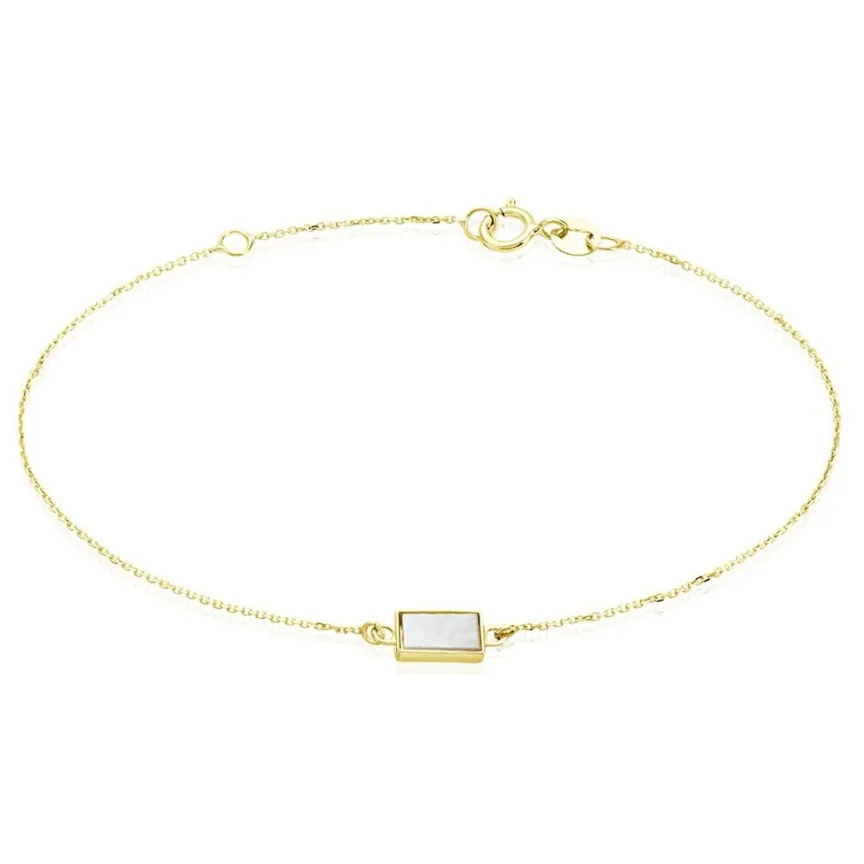Bracelet Or Jaune 375/1000 Nacre Rectangle Maille Jaseron 16+2cm