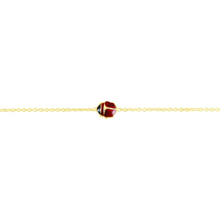 Bracelet Or Jaune 375/1000 Maille Vénitienne Coccinelle Smalto Rouge 14cm