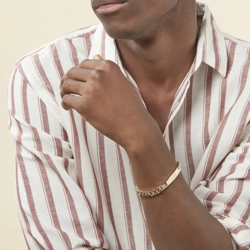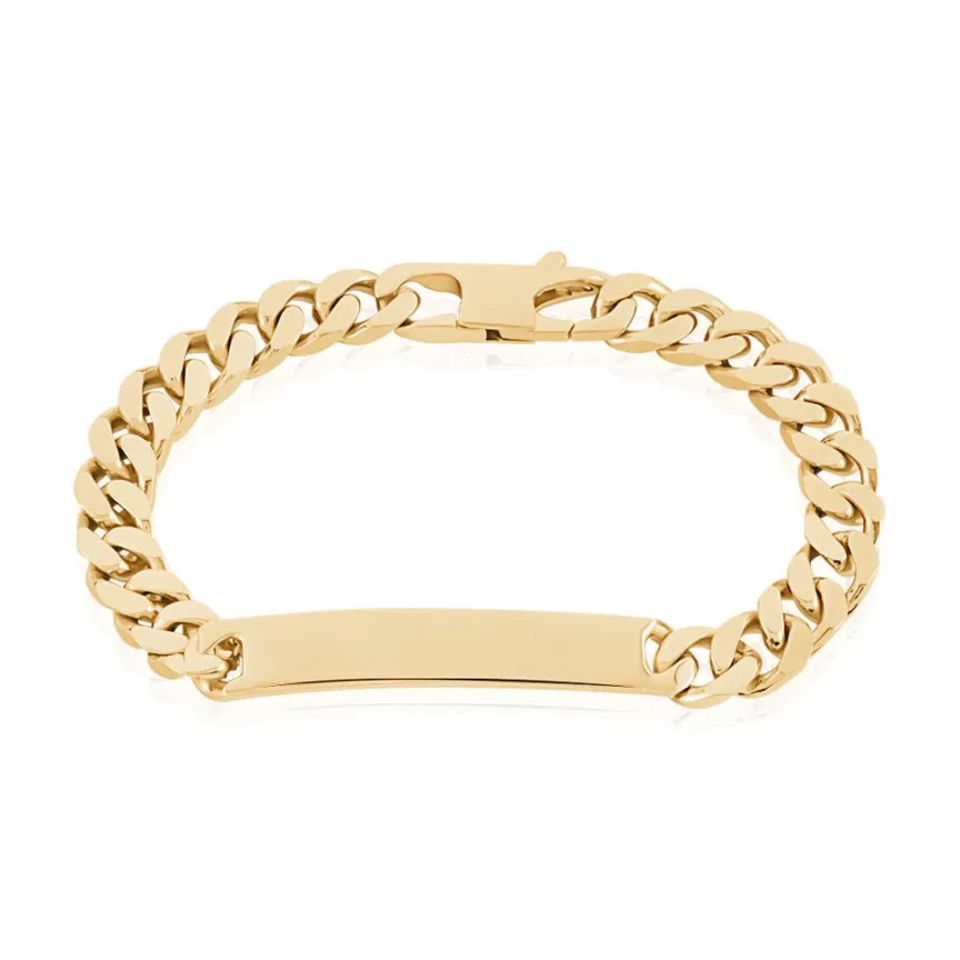 Bracelet Identite Plaque Or Jaune Maille Gourmette 8mm 21cm