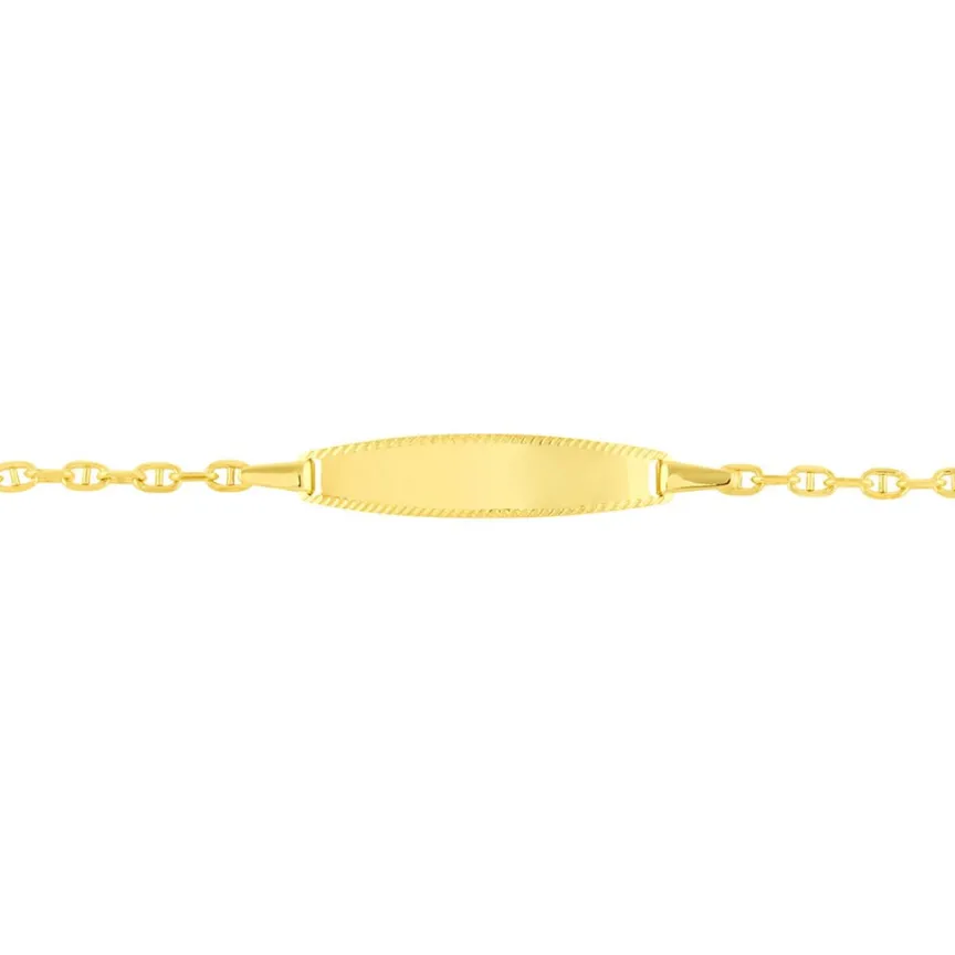 Bracelet Identite Bebe Or Jaune 375/1000 Plaque Ovale Ciselee Maille Marine 13/15cm