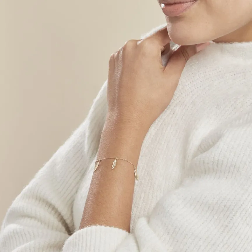 Bracelet Or Jaune 375/1000 Pampilles Triple Feuilles Maille Cheval 18.5cm