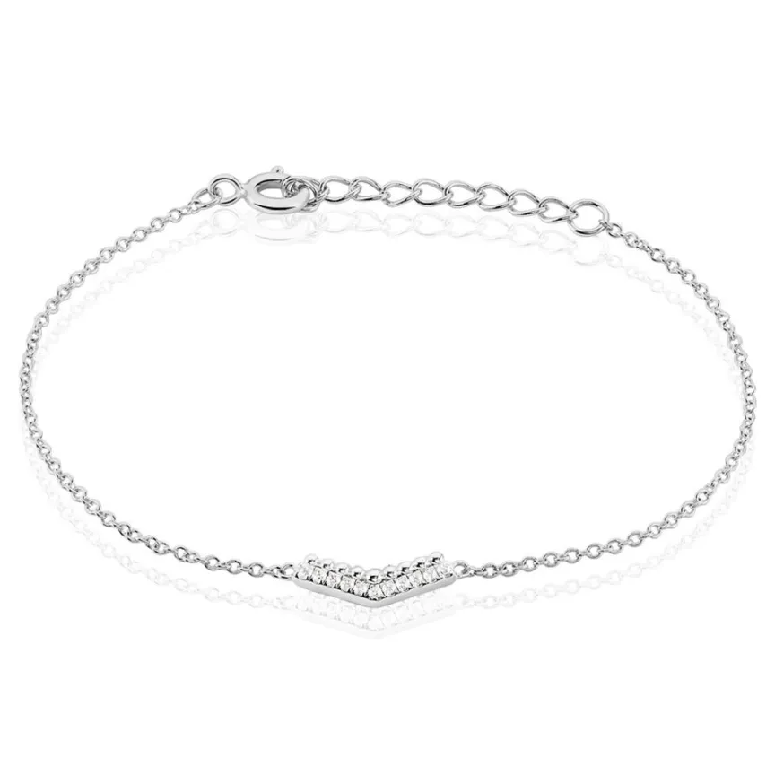 Bracelet Argent 925/1000 irina Forme Double Ailes De Mouette Effet Perle Et Pavage Oxydes De Zirconium Blancs 18.5cm