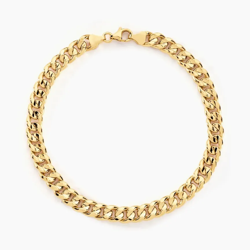 Bracelet Or Jaune 375/1000 Maille Gourmette Largeur 6.05mm 21cm