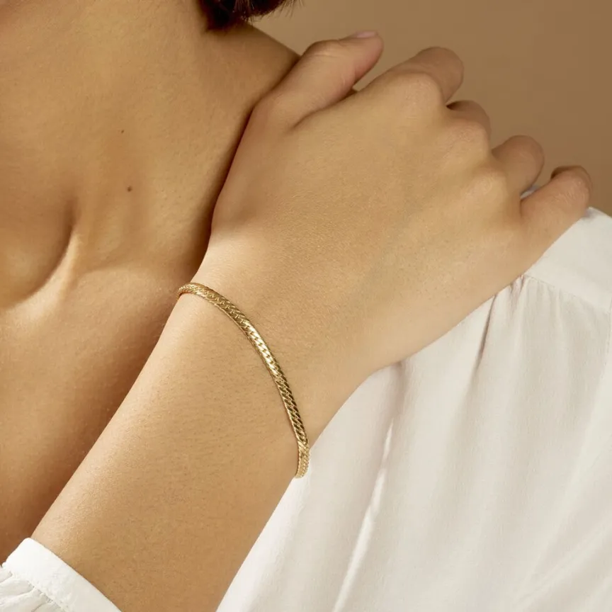 Bracelet Or Jaune 375/1000 Maille Anglaise Satinée 3.5mm 18cm