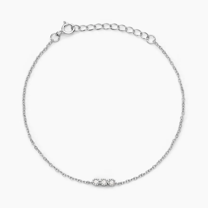 Bracelet Argent Blanc 925/1000 Trilogie Oxydes De Zirconium Maille Forçat 16+3cm