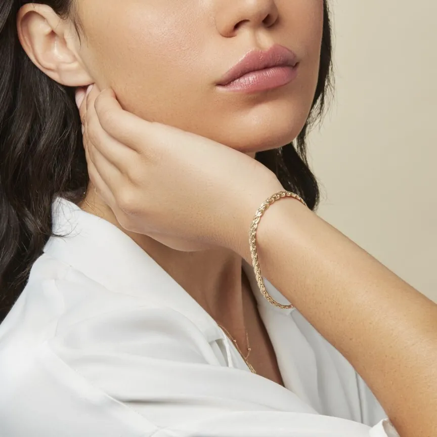 Bracelet Or Jaune 375/1000 Maille Palmier Ecrase 4.5mm 20cm