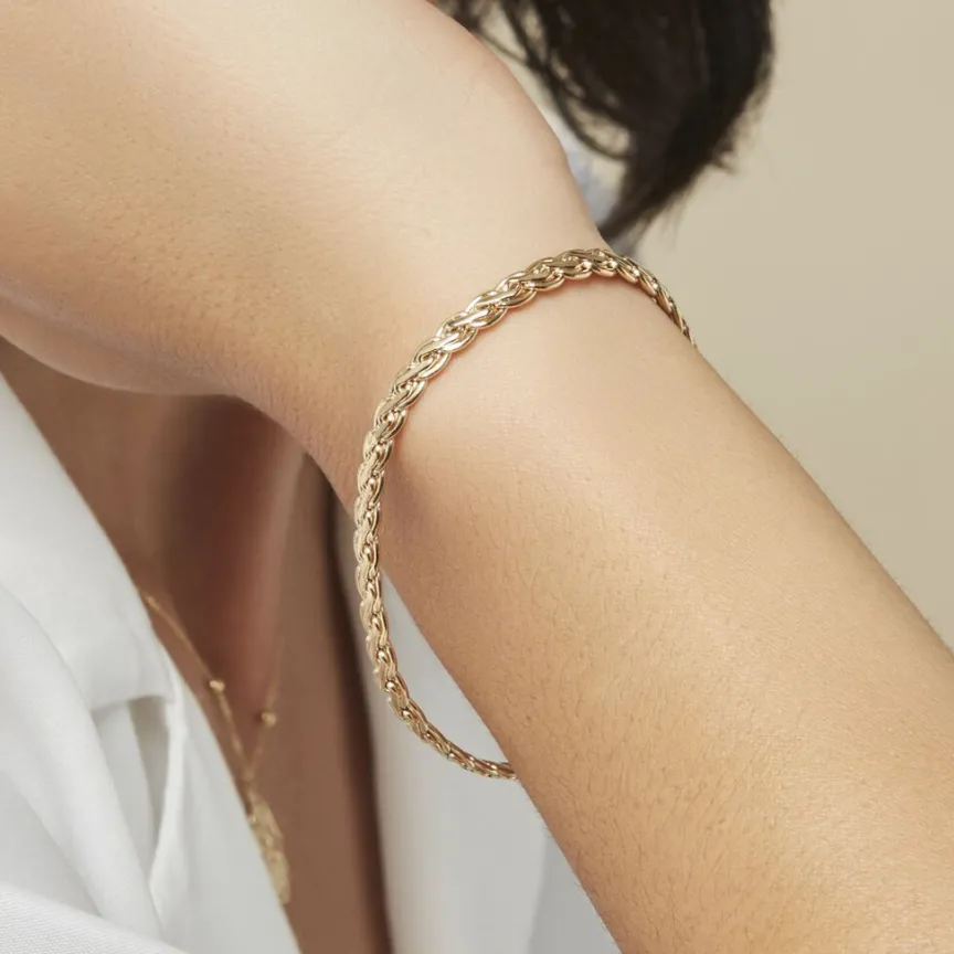 Bracelet Or Jaune 375/1000 Maille Palmier Ecrase 4.5mm 18cm