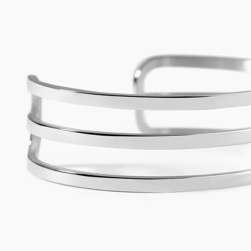 Bracelet Jonc Acier Inoxydable Blanc Ouvert 3 Rangs Ajoures