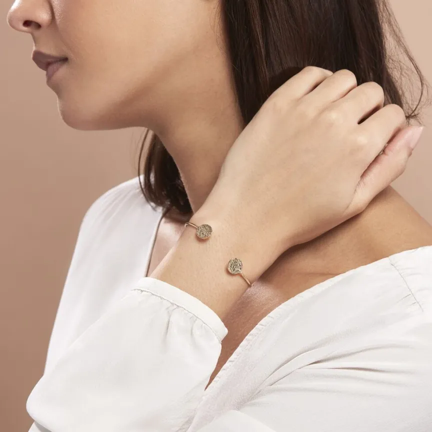 Bracelet Jonc Plaqué Or Jaune Ouvert Forme Pastilles Effet Martele Diametre 45*55mm