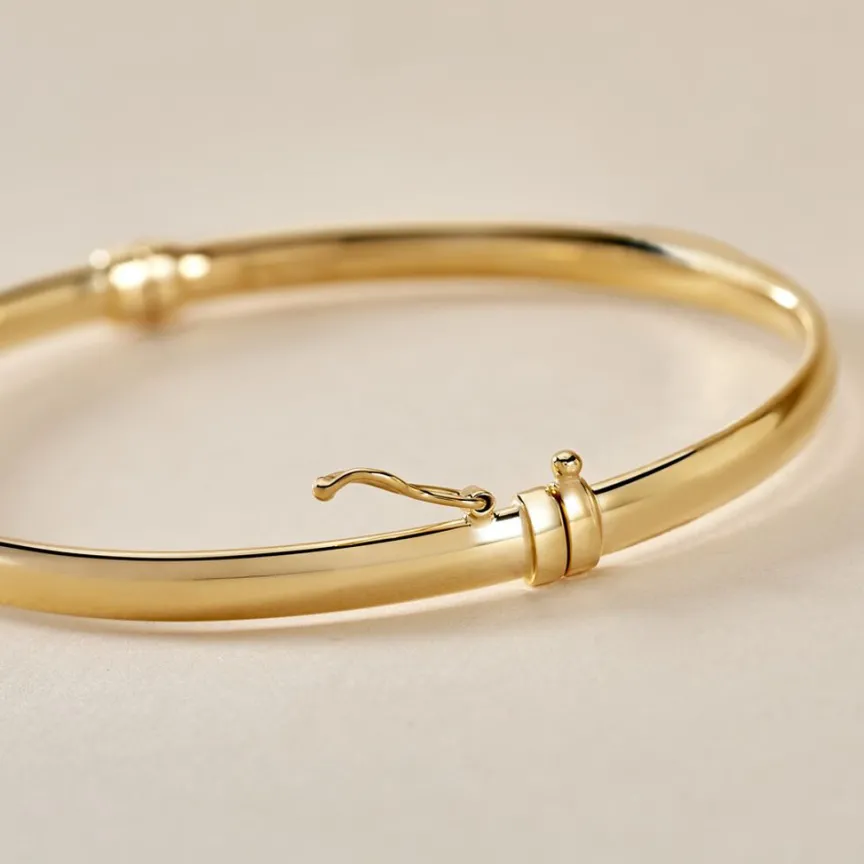 Bracelet Jonc Or Jaune 375/1000 Fil Plat Lisse 4×1.30mm Diam 60