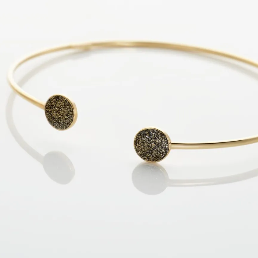 Bracelet Jonc Or Jaune 375/1000 Double Pastilles Glitter Bronze