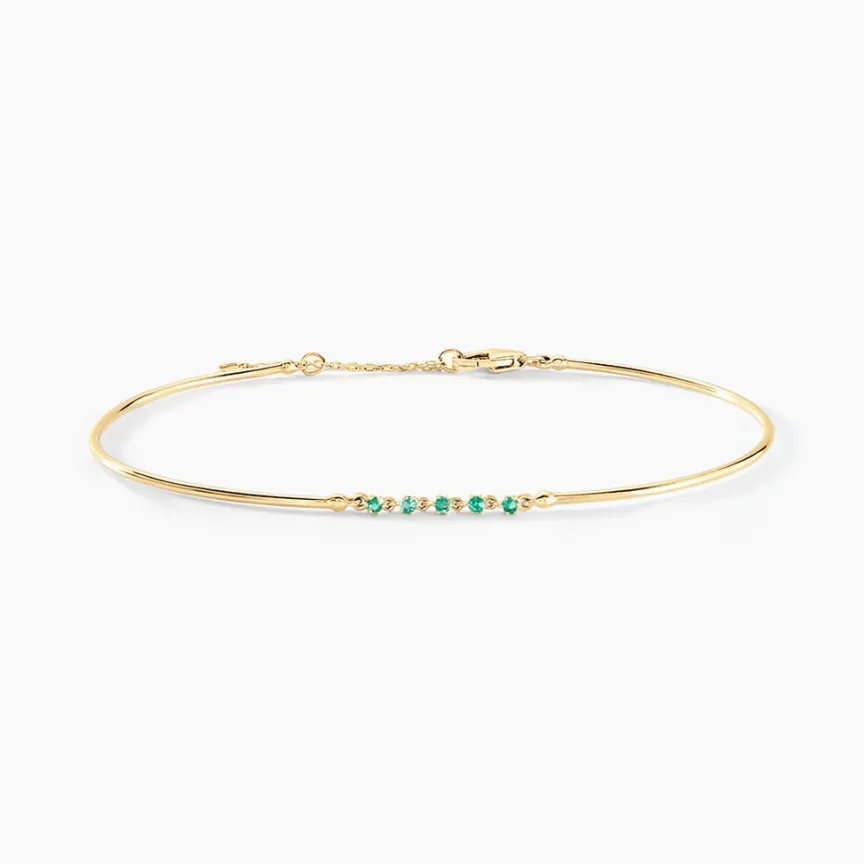 Bracelet Jonc Or Jaune 375/1000 5 Emeraudes Vert Serti Griffes 60cm