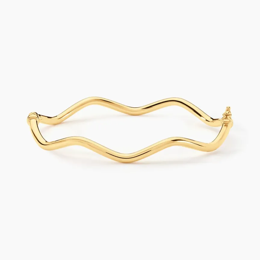 Bracelet Jonc Or Jaune 375/1000 Lisse Ondule 3mm 6.10*5cm