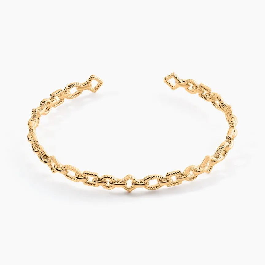 Bracelet Jonc Plaqué Or Maillons Ovales Et Carrés Effet Torsade Diamètre 58mm