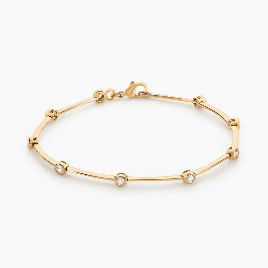 Bracelet Plaque Or Jaune Maille Fantaisie Oxydes De Zirconium Sertis Clos 18cm