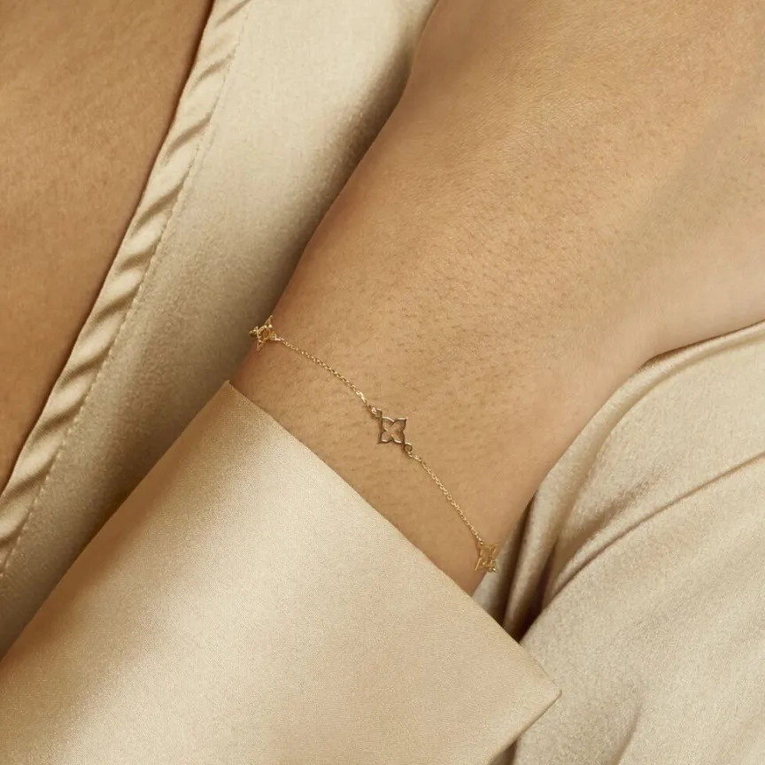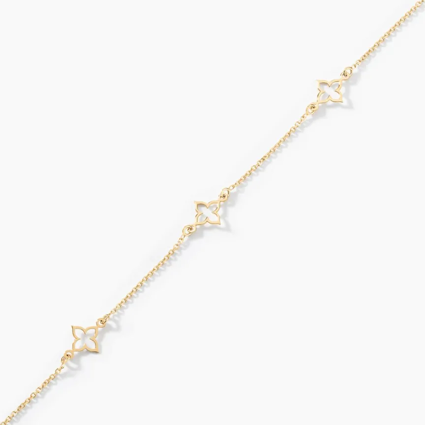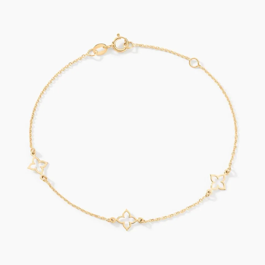 Bracelet Or Jaune 375/1000 Motifs Trefles Ajoures Maille Jaseron 18cm