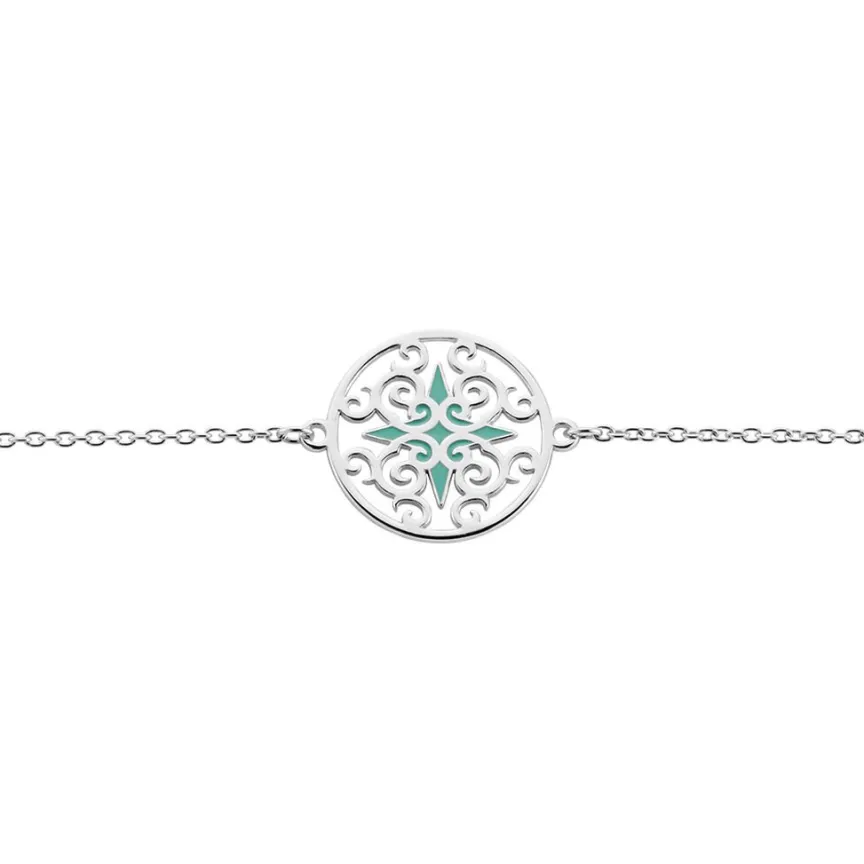 Bracelet Argent 925/1000 Rosace Email Turquoise Maille Forçat 19cm