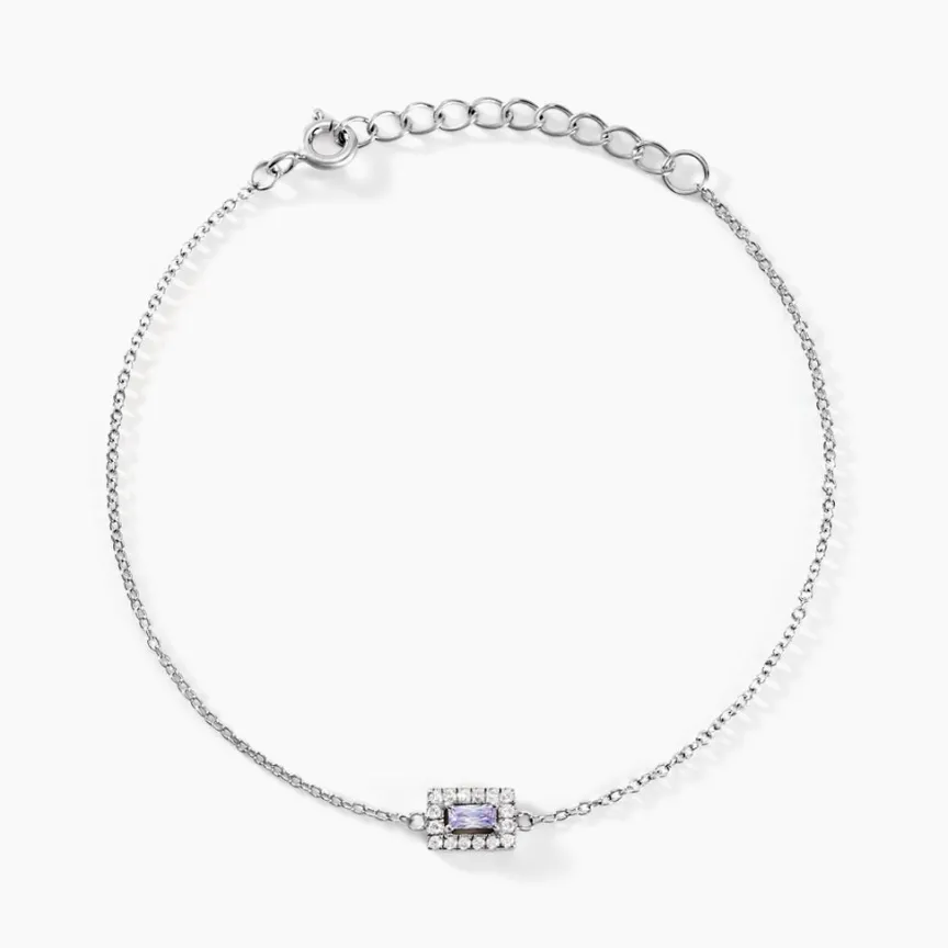 Bracelet Argent 925/1000 Baguette Oxyde De Zirconium Lavande Et Entourage Maille Forçat 16+3cm