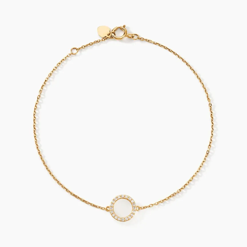 Bracelet Or Jaune 375/1000 Cercle Creux Pave Oxyde De Zirconium 18cm