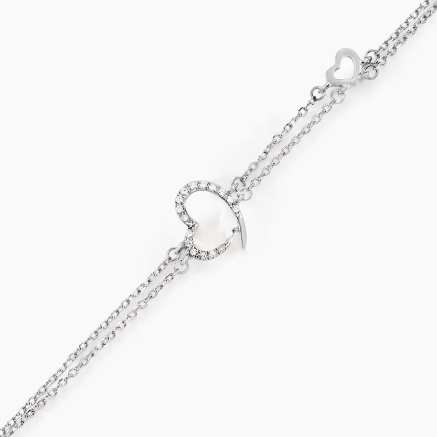 Bracelet Or Blanc 375/1000 C艙ur Diamants 18.5cm
