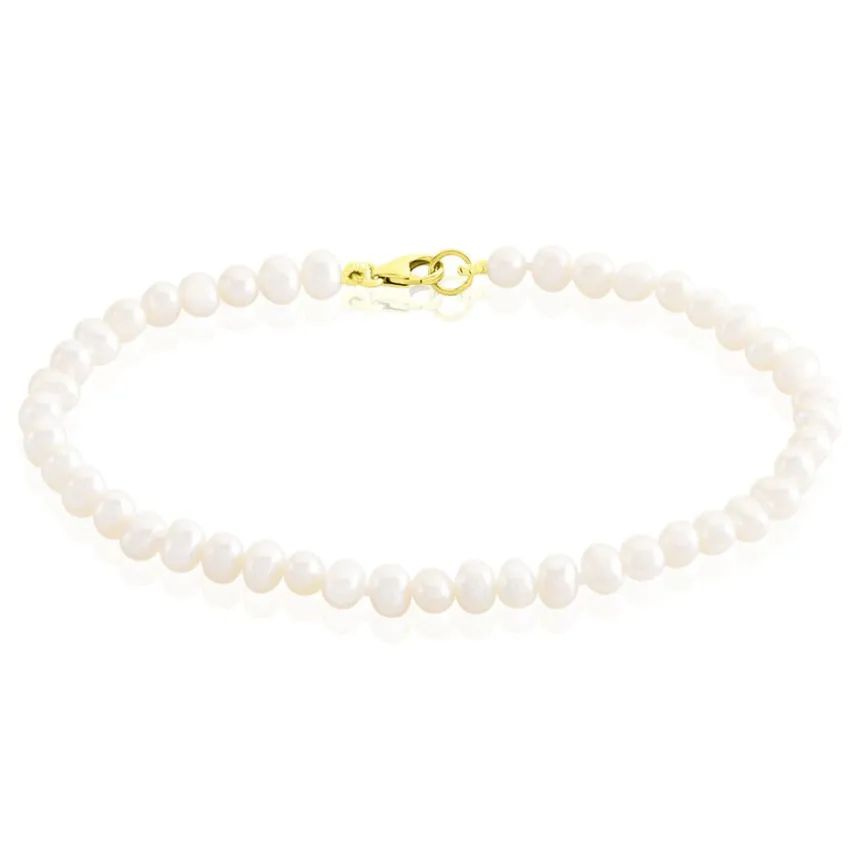 Bracelet Or Jaune 375/1000 Perles De Culture Semi-baroques 3.5/4mm 18cm