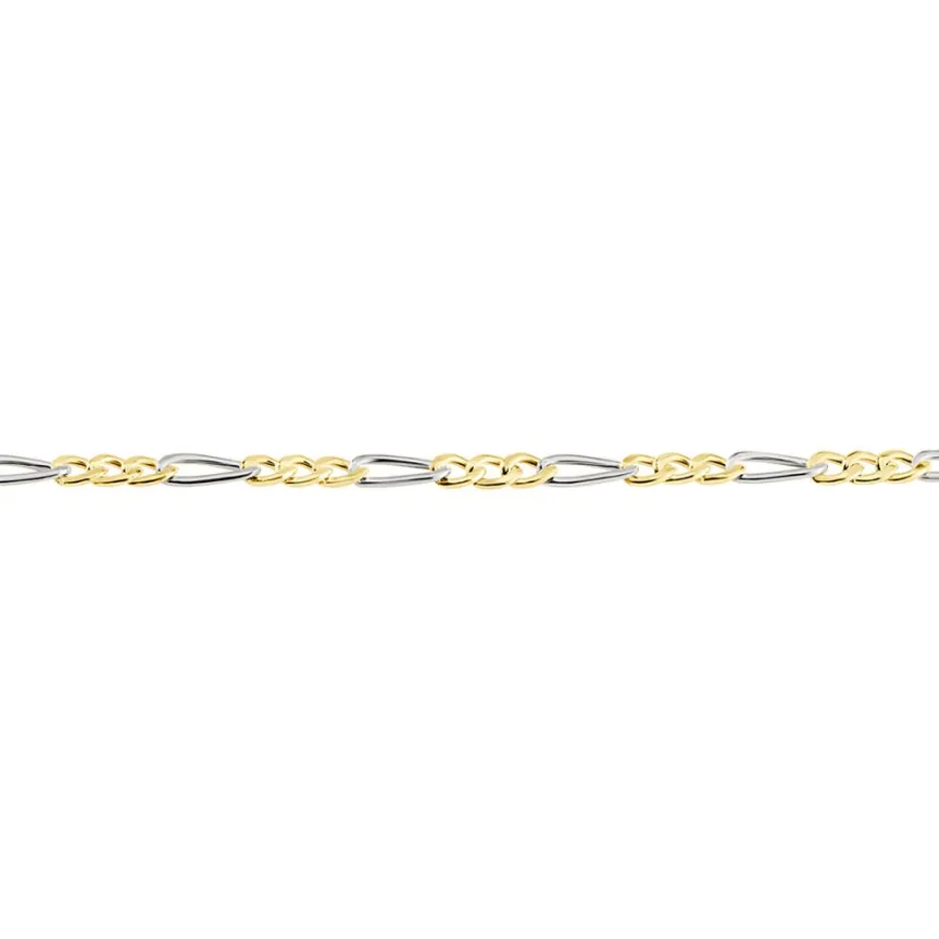 Bracelet Maille Or Bicolore Jaune Et Blanc 750/1000 Maille Alternee 1/3 Largeur 2.2mm 20cm