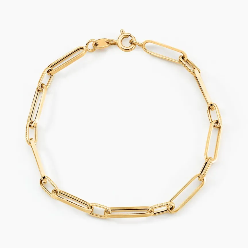 Bracelet Or Jaune 375/1000 Petit Et Grand Maillons Forcat 19cm