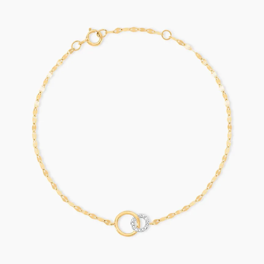 Bracelet Or Jaune 375/1000 Double Cercles Diamant Illusion Maille Lumina 16+2Cm