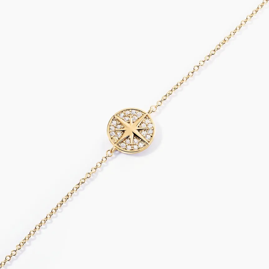 Bracelet Plaqué Or Jaune Forme Pastille Etoile Berger Oxydes De Zirconium 18cm