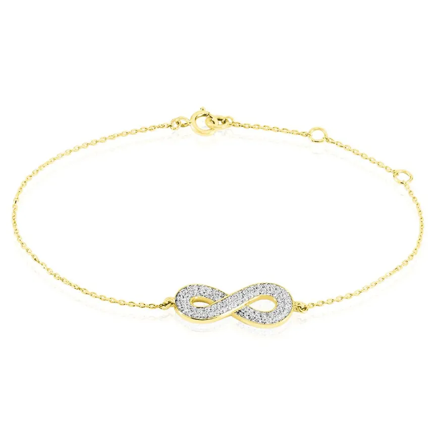 Bracelet Or Jaune 375/1000 Infini Double Rang Oxydes De Zirconium 19cm