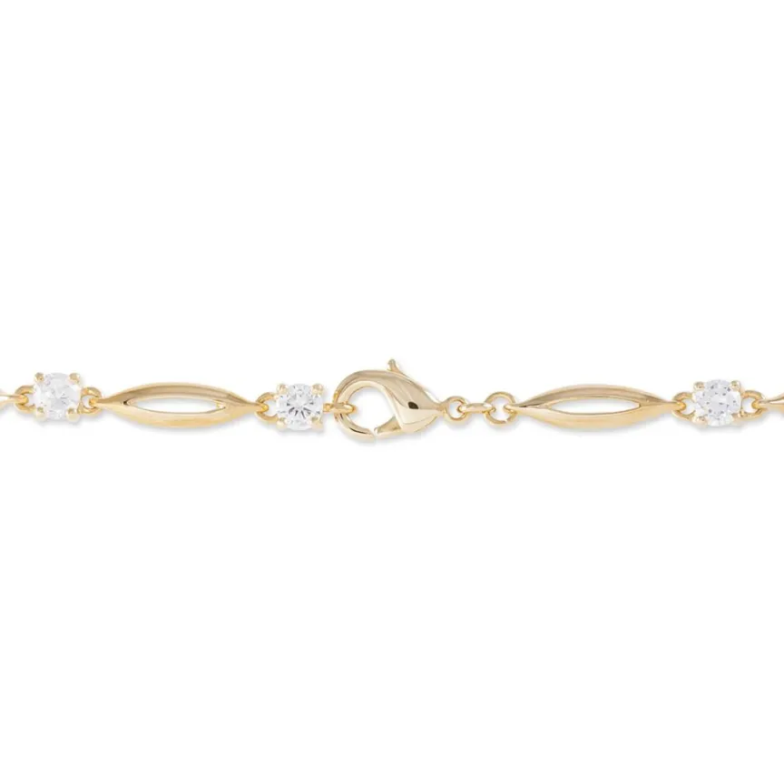 Bracelet Plaque Or Jaune Maille Fantaisie Oxyde De Zirconium 18cm