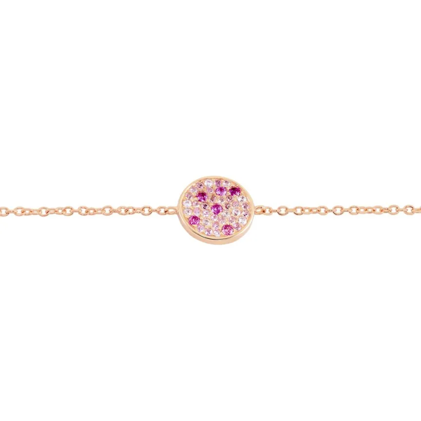 Bracelet Argent Rose 925/1000 Pastille Camaieu Rose Micro Setting Oxydes De Zirconium Maille Forçat 18.5cm