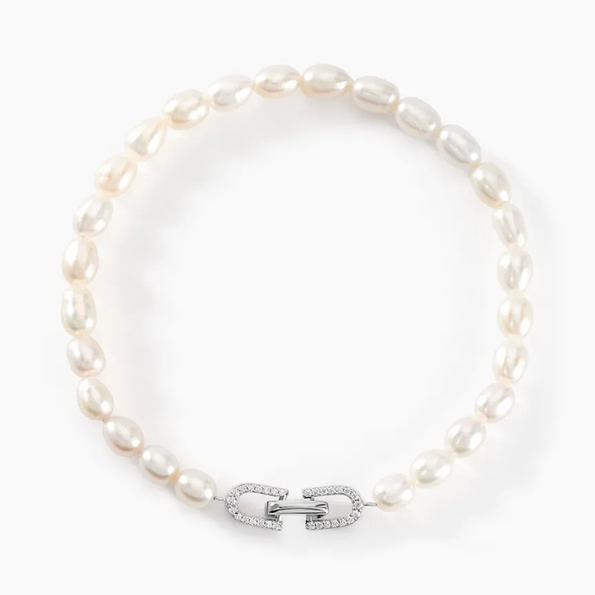 Bracelet Argent Blanc 925/1000 Perles De Culture Fermoir Oxydes De Zirconium 18cm