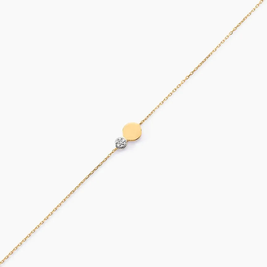 Bracelet Or Jaune 375/1000 Pastille Pleine Et Pastille Pavage Diamants Maille Forcat 16+2cm