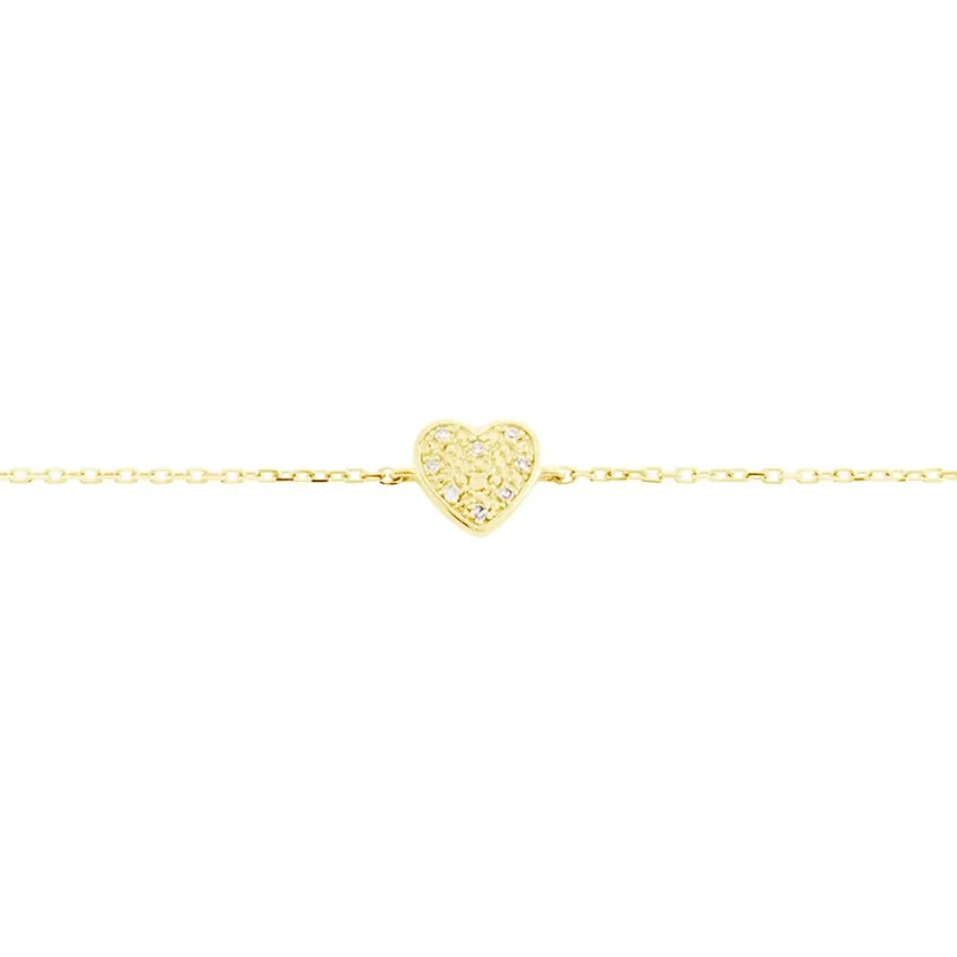 Bracelet Or Jaune 375/1000 Coeur Pavage Diamants Maille Forcat 16+2cm