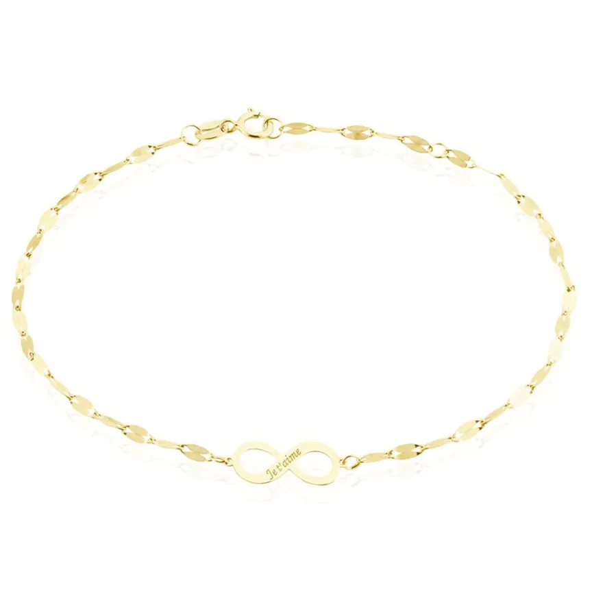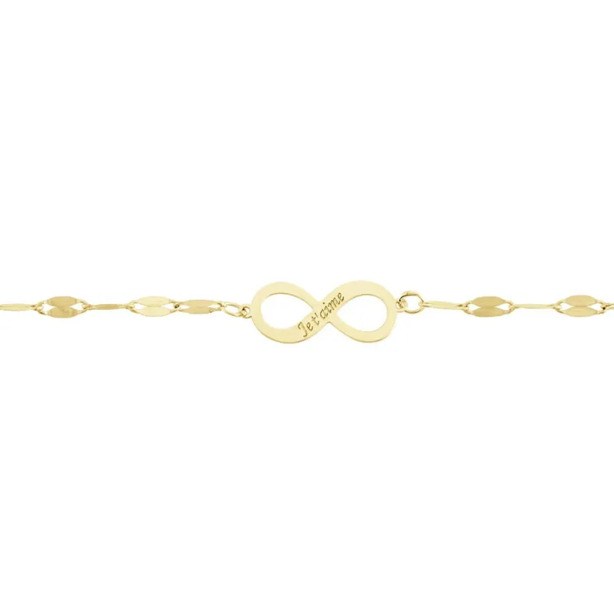 Bracelet Or Jaune 375/1000 Motif Infini Message Je Taime Maille Lumina 16/18cm