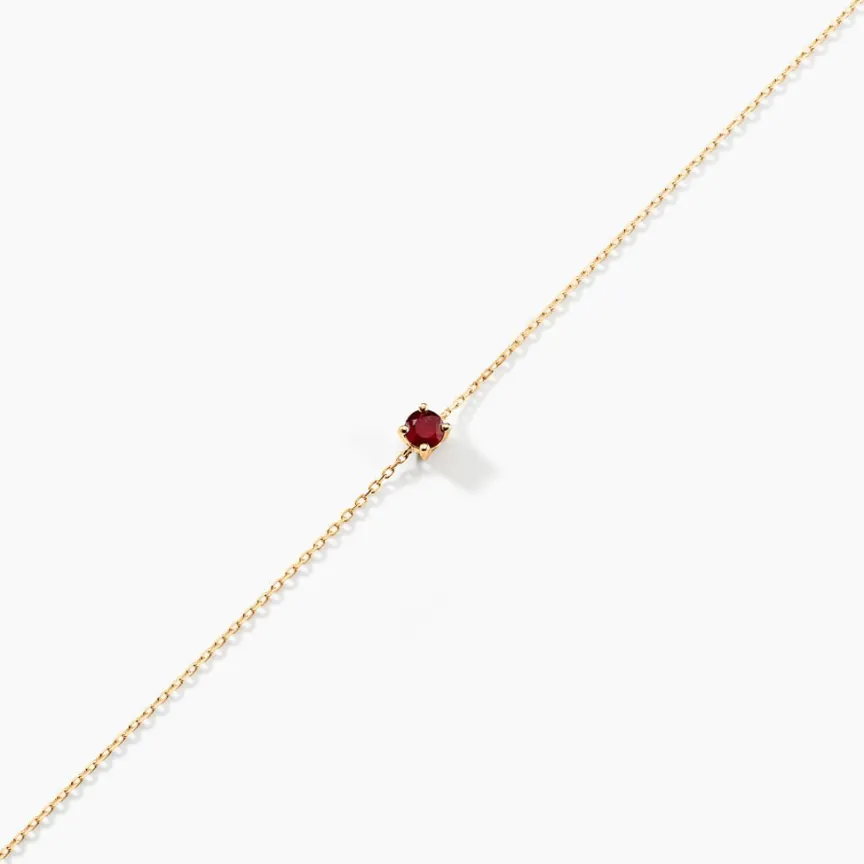 Bracelet Solitaire Or Jaune375/1000 Rubis Serti Griffes 0.12ct Maille Forçat 18cm