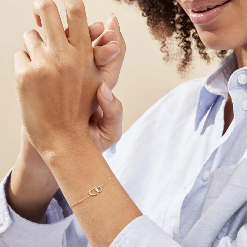 Bracelet Or Jaune 375/1000 Forme Double C艙ur Pavage Diamants Blancs Maille Forçat 16+2cm